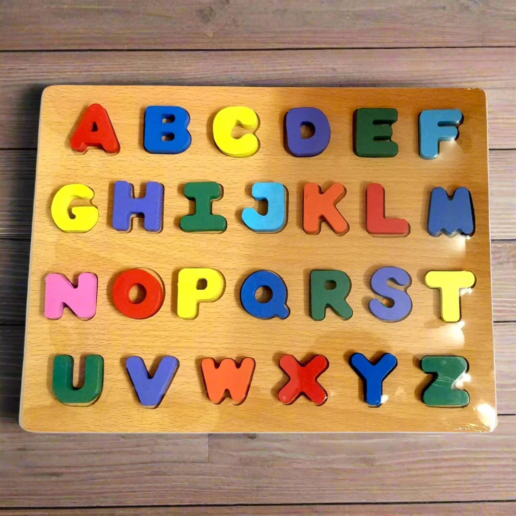 Boost your child’s learning journey with this all-in-one wooden puzzle set featuring colorful Capital letters, Lowercase letters, Arabic letters and Numbers!