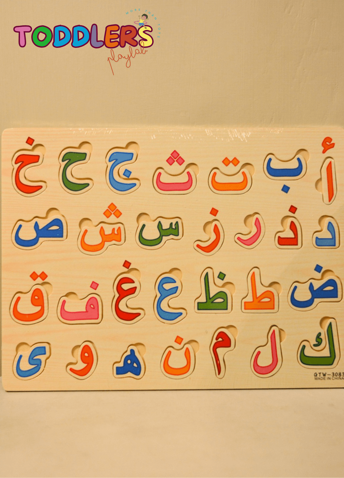 Boost your child’s learning journey with this all-in-one wooden puzzle set featuring colorful Capital letters, Lowercase letters, Arabic letters and Numbers!